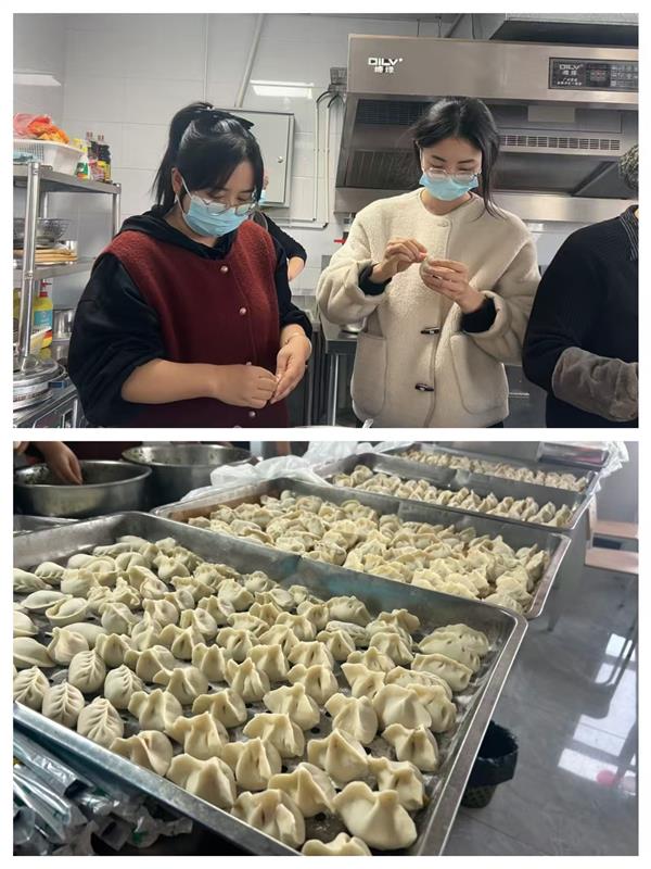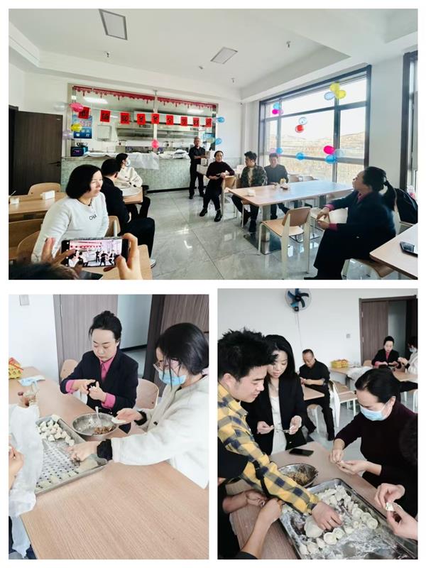 集團領導班子成員也一同加入到包餃子的行列中,一邊包餃子一邊與年輕員工分享冬至習俗:“冬至不端餃子碗,凍掉耳朵沒人管。今天咱們多包點,讓每個人都吃得暖暖和和!”