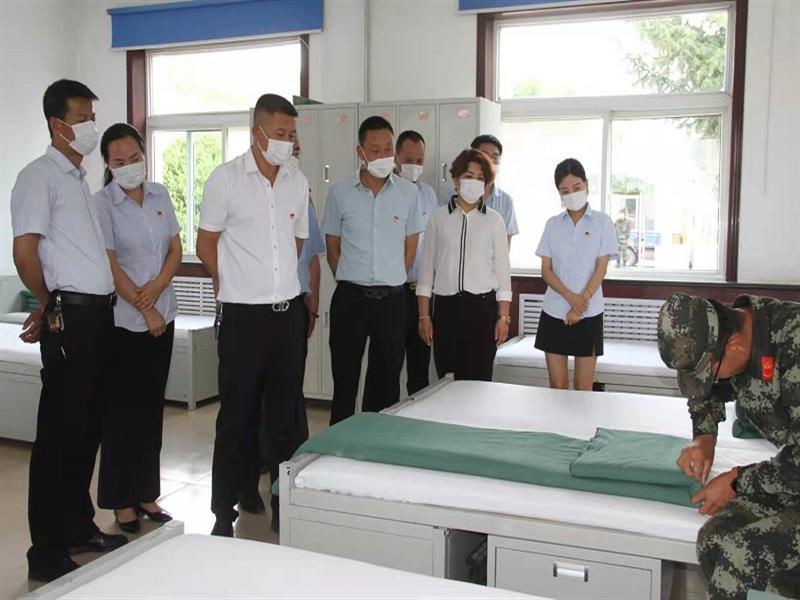 進入軍營,在解說員的帶領下,首先,全體黨員參觀了軍營文化墻、綠色蔬菜基地、訓練項目區(qū)的坑、樁、杠、欄,仿佛眼前每一處都曾滴下他們辛勤的汗水。其次,我們全體黨員列隊,觀看了他們的軍事格斗技能展演,指導員一聲令下,擒拿格斗、制敵方式所有動作嫻熟自如,他們頑強拼搏的精神讓我們每一個在場的人都為之動容。堅信只要他們在,人民就是安全的,他們是黨和人民的驕傲。接著,解說員帶領大家來到生活區(qū),參觀了他們的內務整理,所有物品擺放一致,整齊劃一,床上的被子,就是所謂的“豆腐塊”,堪稱一道亮麗的風景線。隨后,又參觀了部隊的榮譽室,它是這支部隊記錄榮譽、傳承軍魂的精神殿堂,學習傳統(tǒng)、塑造軍魂、牢記使命,墻上懸掛的每一副圖片、柜子上陳列的每一件物品,讓全體參觀人員感慨萬千,對他們的無私奉獻表示崇高的敬意。